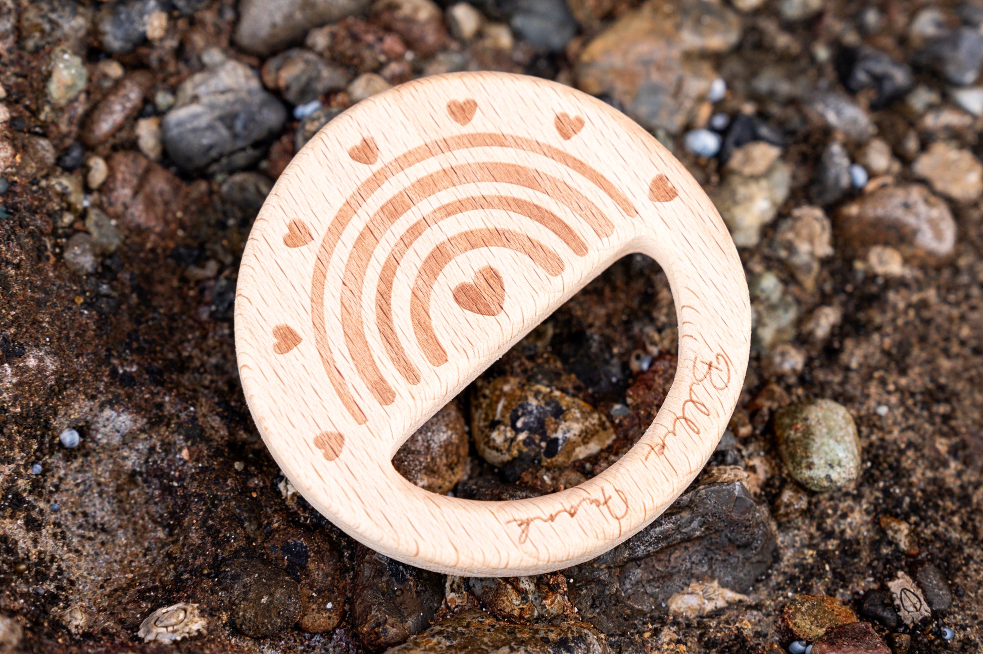 Each teether is unique due to natural beechwood variations, making it a beautiful keepsake and a perfect gift!